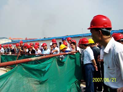 烈日炎炎,在热火朝天的金叶岛11B区的施工现场,中国华西企业有限公司金叶岛项目部总工程师黄子慎向与会人员介绍了该工程的概况,带领大家参观工地的施工用电、基坑、模板支撑等工程,并逐一介绍安全用电原理、基坑围护措施、模板支撑的作法。会上,龙湖区安监站黄柱群站长向大家通报近期工地安全检查情况,区建设局杜楚帆副局长对近年来区建筑施工安全生产工作进行总结,并研究部署下来全区的建筑施工安全生产工作的开展。最后,针对如何强化监管、落实责任,严防建筑施工重特大恶性事故的发生,促进全区建筑施工安全生产工作标准化开展,区城管局局长张义良同志提出四点要求:一是要强化安全责任意识,进一步抓好建筑施工安全生产工作;二是要狠抓好各项管理制度的落实,保障施工安全;三是要严格执行建设工程安全生产措施费单列制度,确保建筑安全生产费用的有效投入;四是要加强监督管理,努力提高安全监管水平。