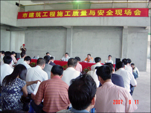 浏览次数:927为总结推广先进的建筑施工经验,促进我市建筑工程质量安全水平的不断提高,市建设局于近日在达濠建筑总公司承建的“拉飞逸厂房工地”召开全市建筑工程质量安全现场会。各级管理部门负责人和一、二级建筑施工企业,各在建工程的项目经理或总施工长、项目总监共250人出席了现场会。达濠建筑总公司、市安监总站、市质监站领导分别作了施工经验介绍和点评,杨鮀生副局长作总结讲话。