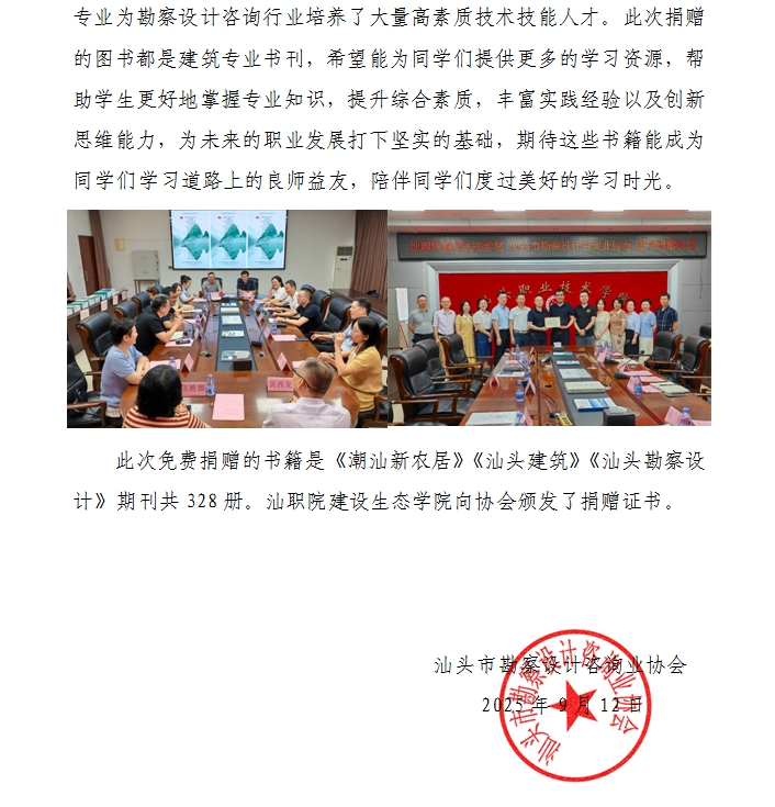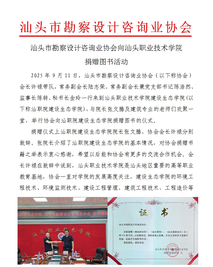 汕头市勘察设计咨询业协会向汕头职业技术学院捐赠图书活动